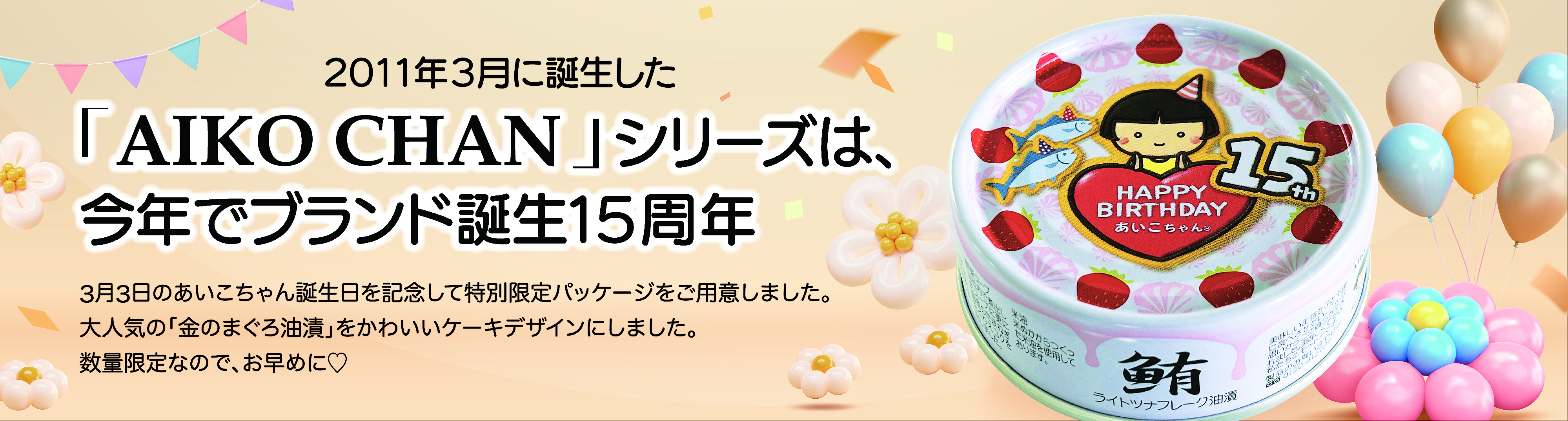 他の画像を見る 【30%OFF】15周年記念パッケージ/ あいこちゃんまぐろ油漬け 70g×24缶- 価格 ¥ 2,900 税込 販売期間 2026/03/01 10:00 〜 2026/03/31 17:00 詳細を見る お気に入りに登録する