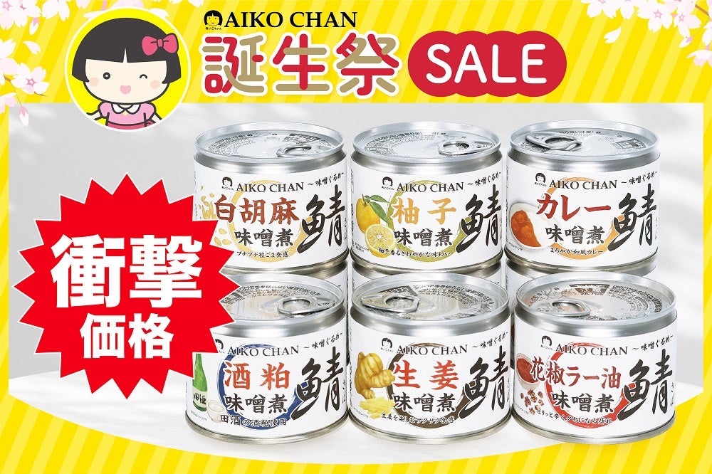 他の画像を見る あいこちゃん鯖味噌煮 ご当地味噌6種6缶_ 価格 ¥ 2,000 税込 販売開始前です。 販売期間 2026/03/08 10:00 〜 2026/03/08 23:59 詳細を見る お気に入りに登録する