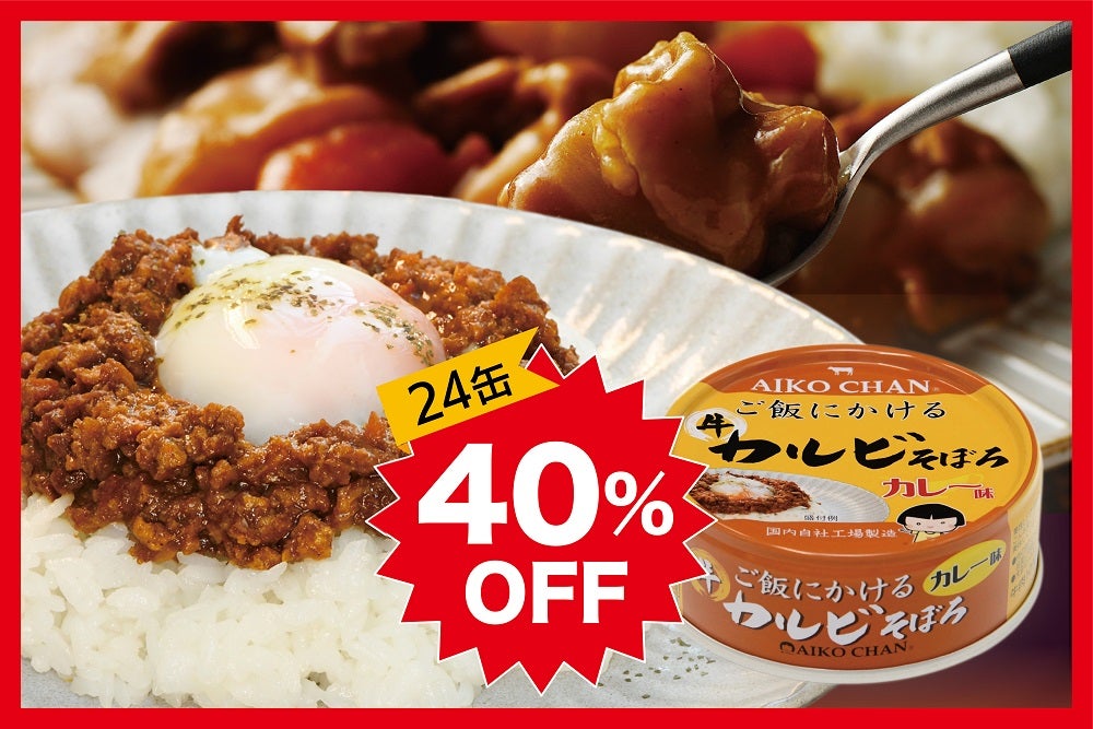 他の画像を見る 【40%OFF】あいこちゃん ご飯にかける 牛カルビそぼろカレー味 60g×24缶- 価格 ¥ 2,500 税込 販売期間 2026/03/03 10:00 〜 詳細を見る お気に入りに登録する