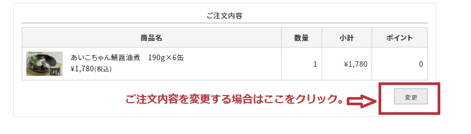 ご注文商品に間違いがないか、ご確認ください。 変更・追加がある場合は、「変更」ボタンをクリックしてカートへ戻り、変更をお願いいたします。