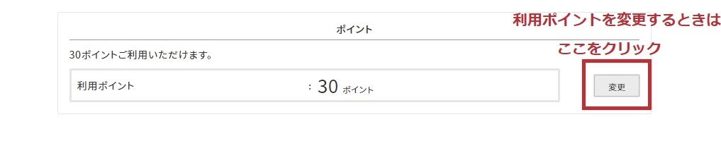 ご利用いただけるポイントが表示されます。 ご利用ポイント数を変更する場合は、変更ボタンをクリックし、利用するポイント数をご入力ください。
